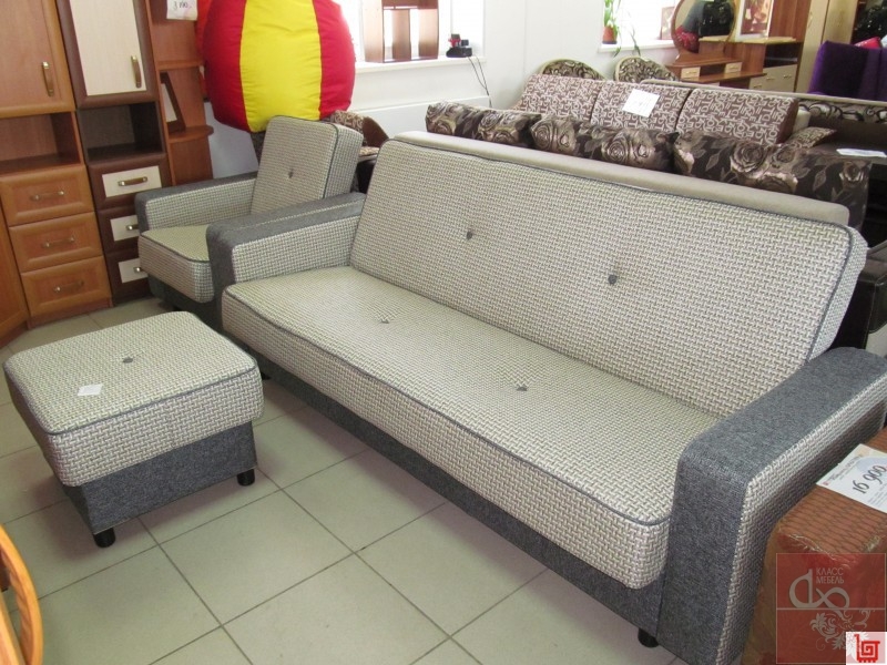 Комплект мягкой мебели «Элегия 2» включает в себя: диван-книжку недорого, кресло-кровать и пуф.